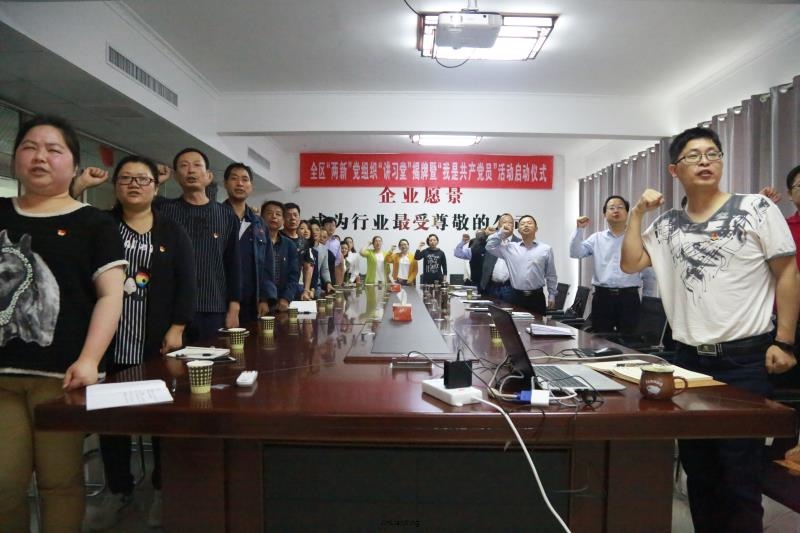 2018年5月10日,區(qū)委書記謝勝、區(qū)委組織部部長(zhǎng)傅大斌等領(lǐng)導(dǎo)來我公司主持了“兩新”組織“講習(xí)堂”掛牌儀式。掛牌儀式結(jié)束后,區(qū)委領(lǐng)導(dǎo)和公司在家的全體黨員在公司高級(jí)顧問黃躍文同志的帶領(lǐng)下重溫了入黨誓言,區(qū)委書記謝勝給全體黨員和高管上了一堂黨課,闡述了當(dāng)中央對(duì)民營(yíng)經(jīng)濟(jì)的定位以及對(duì)產(chǎn)權(quán)的保護(hù),指出了黨組織可以在民營(yíng)企業(yè)中發(fā)揮的作用以及如何發(fā)揮作用,公司黨員在黨課結(jié)束后深感振奮。區(qū)委及區(qū)委組織部領(lǐng)導(dǎo)在與公司黨支部溝通時(shí),對(duì)公司黨建工作表示了充分肯定,并對(duì)公司黨支部下一步工作重點(diǎn)作出了重要指示。